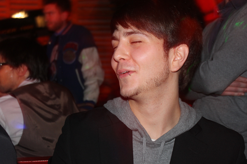 Nous profitions aussi de cette soirée qui tombait pile le jour de l’anniversaire de mon amoureux pour célébrer. Whisper et Thomas sont venus, et ça nous a fait très très plaisir. Mike est venu également, que je n’avais pas vu depuis quelques temps, et ma soeur (qui a débarqué, sortant de répétition, son violoncelle sur le dos, et je dit respect), et Yannick, qui nous accompagnait déjà au BDS, et aussi quelques amis à chéri, qui était très beau, dans sa chemise d’anniversaire.