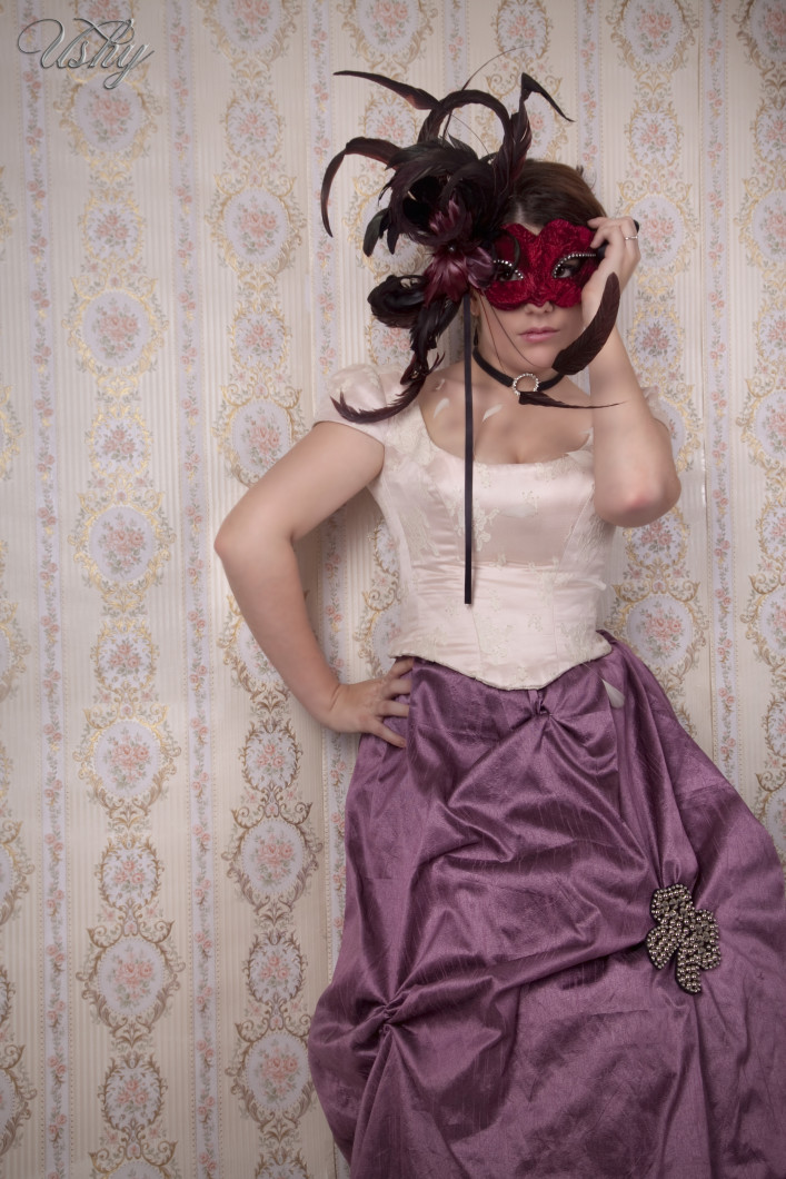Bon cela dit ushy, si tu passe par là, inutile de prendre un mois de plus avant de m’envoyer la suite, ce serait carrément cruel. Sandrine, toi qui voulait voir ma tenue en pied j’espère qu’elle trouvera grâce à tes yeux. Je suis très consciente que l’association bustier à plumes et application de dentelle + jupe froufroutante rose + masque vénitien est un exercice de style casse gueule et qu’on n’est pas très loin du super kitsh avec un truc pareil mais… je n’ai pas su résister.
