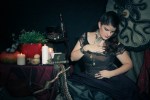 Cette ambiance plus medfan que d’habitude peut surprendre, et je sais qu’il y aura des questions quand au choix du personnage, mais j’y ai longtemps réfléchis. Pour moi ce qui est érotique dans le personnage de la sorcière, c’est que c’est une femme de pouvoir. Son savoir la met à part et la fait respecter et craindre. On l’accuse de pratiques hérétiques et de forniquer avec le démon. Il n’en fallait pas plus pour que je décide de m’emparer du personnage.