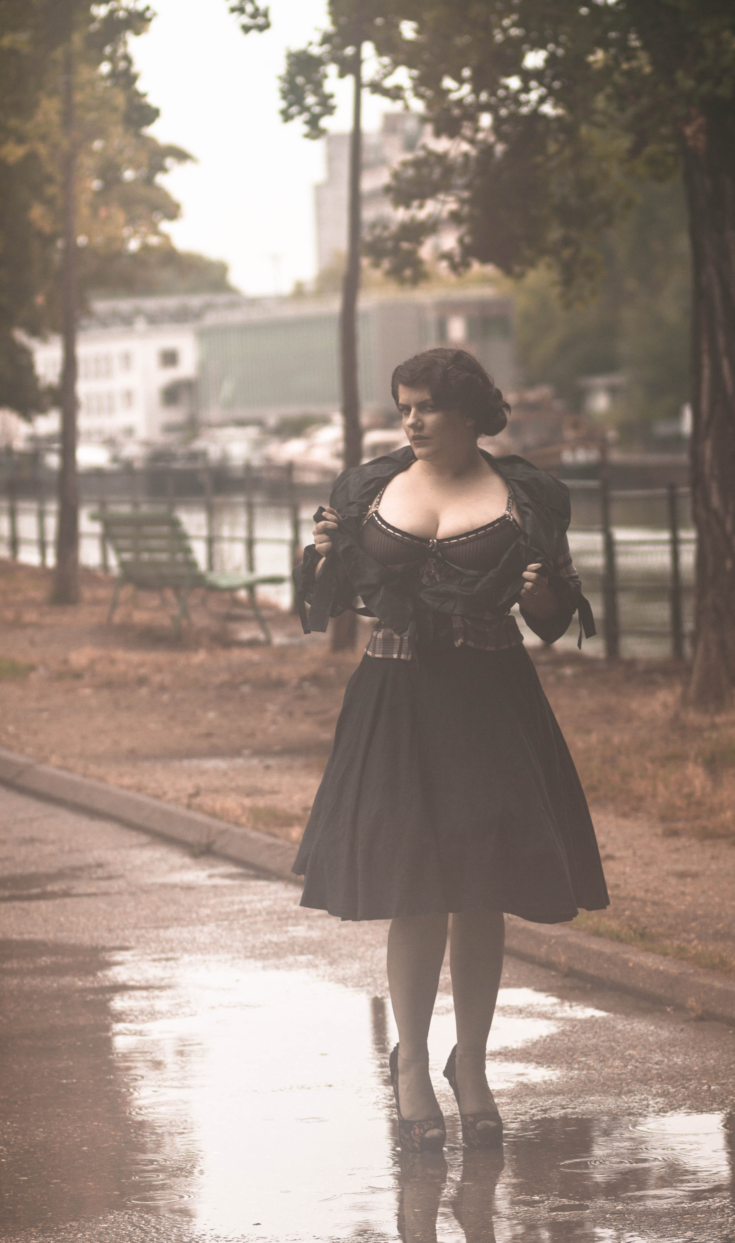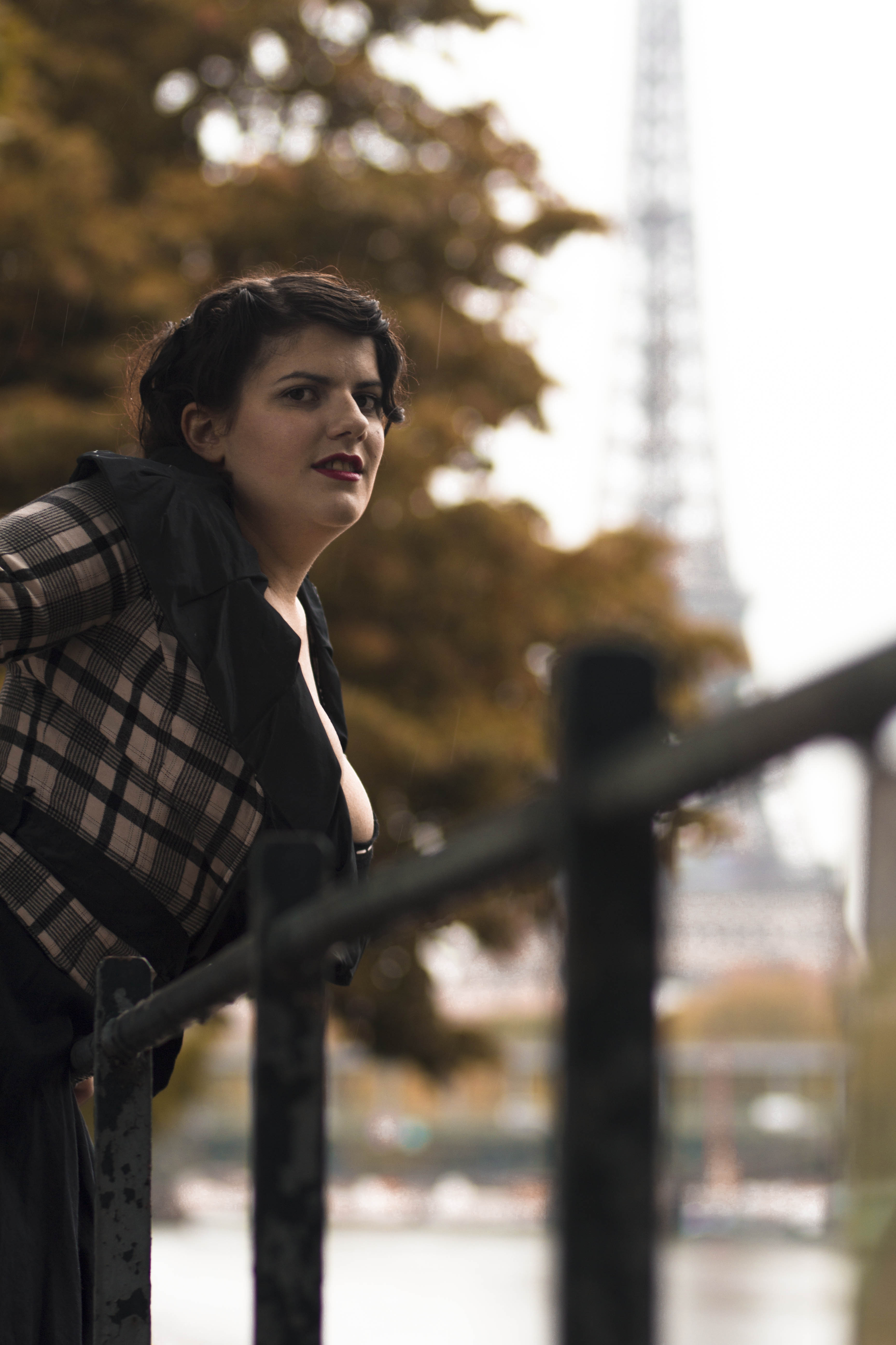 Nous sommes deux françaises vivant à Paris, le stéréotype du sexy, le cliché en lui même faisait déjà la moitié du boulot pour nous. Nous nous sommes donc mis d’accord pour shooter dans un joli endroit proche du bureau, avec vue sur la Tour Eiffel, et deux personnages très reconnaissables : la parisienne, le gavroche. L’objectif : jouer à fond sur la nostalgie des périodes post guerres mondiales où les soldats américains basés à Paris découvraient le charme sulfureux de la « french girl » et ramenaient ensuite à la maison des histoires de séductrices incomparables, libertines, en avance sur leur temps et sophistiquées.