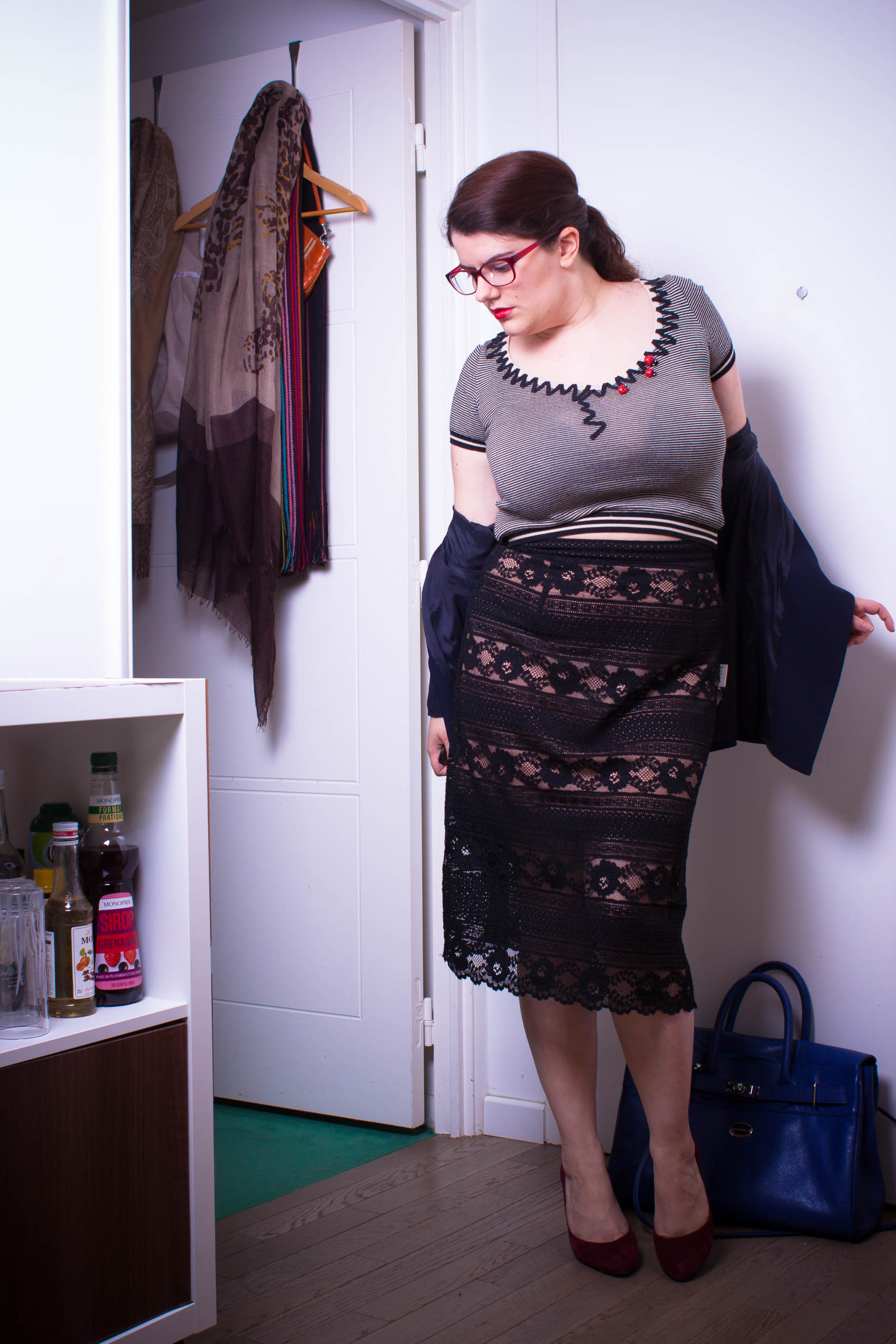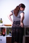 La jupe est toute neuve, c’est un achat que j’ai pu faire grâce à mes tipeurs, et je la destine entre autre à une série en noir et blanc avec une blouse transparente (il faut donc que je trouve une blouse transparente maintenant).