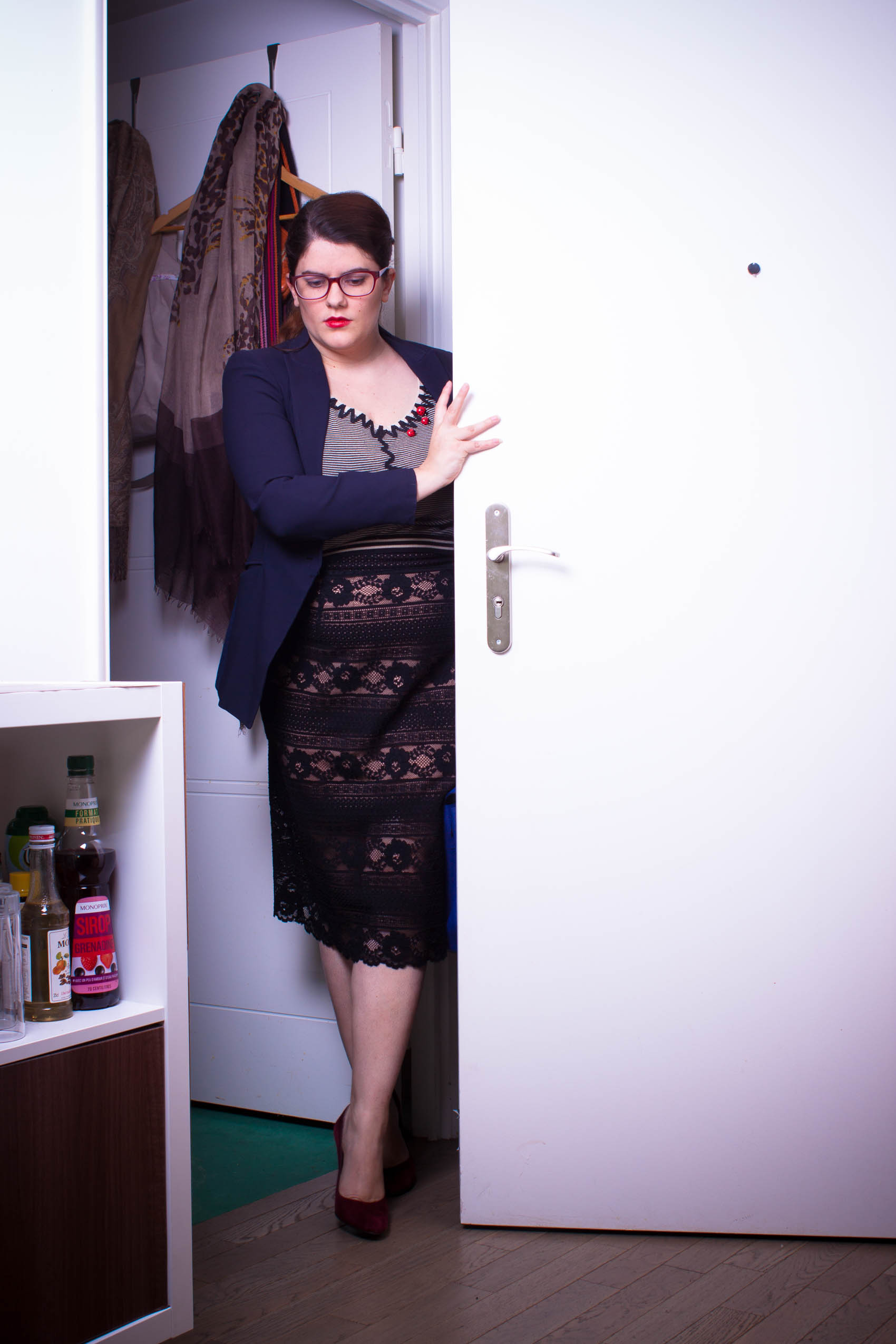 Pour la série d’image de cette semaine, j’ai eu envie de faire quelque chose d’un petit peu plus scénarisé que d’habitude. Comme en ce moment j’enchaine les entretiens, j’ai donc décidé d’opposer le look très formaté des entretiens d’embauche (dans une version un peu sexy quand même) aux soirées T-shirt petite culotte console de jeux qui font pas mal le quotidien en ce moment.