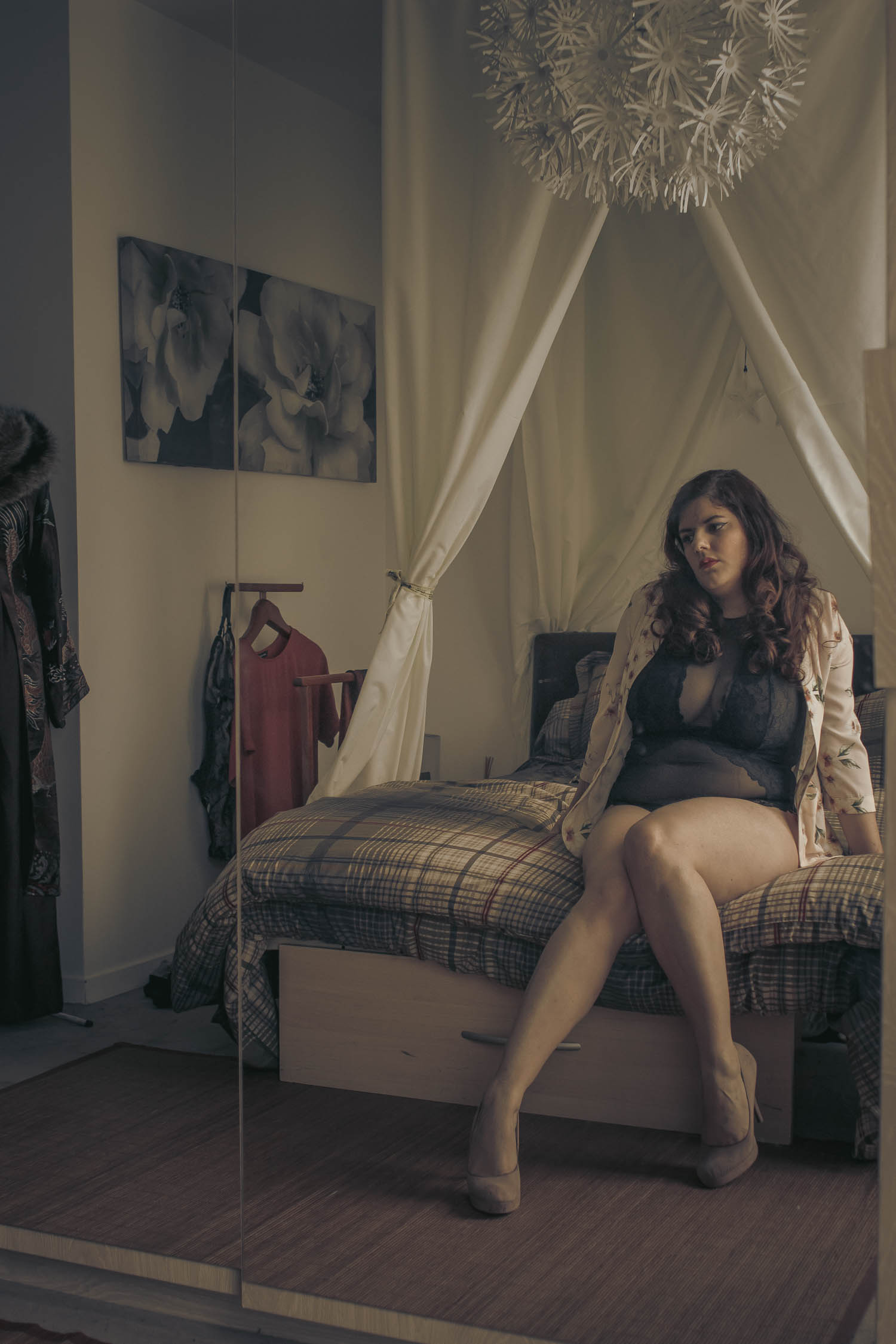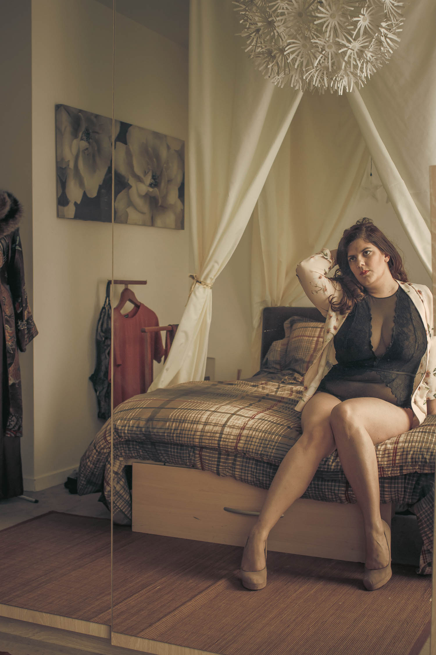 Pour cette série, j’avais donc envie de rester dans la chambre, mais de me poser un petit défi technique en utilisant le grand miroir de mon armoire.